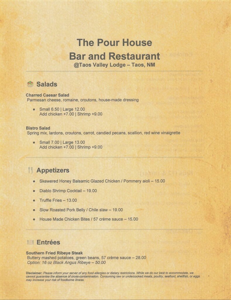 ”The Pour House @ Taos Valley Lodge offers the best NM burger I’ve ever tasted! A must-visit after a day of hiking.”